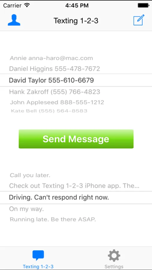 Simply select a contact and select a pre-defined message and press Send. That's it!