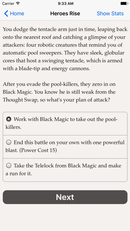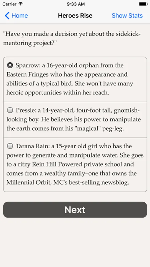 "Heroes Rise: The Prodigy" is an interactive novel where you control the main character. In each chapter, your choices determine how the story proceeds.