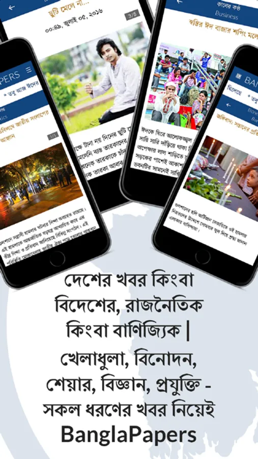 Banglapapers is your all-in-one source for news updates. It includes News, Live TV, Photo, Radio & Videos of all major news sources in Bangladesh. It is a multidimensional app containing both Bangla & English News Contents. This native app instantly connects you to the Top News of Bangladesh including Dhaka, Chittagong, Khulna, Rajshahi, Sylhet and all other major cities. The unique interface & the rich contents made Banglapapers the most popular among other similar apps.