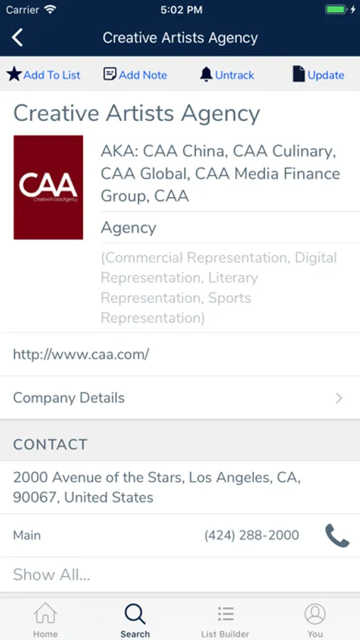 • Access to complete representation info for talent, below-the-line professionals and other industry insiders