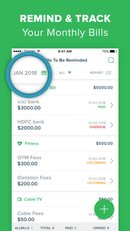* Calendar that will provide you on hand details for over due, plan, and paid expenses.