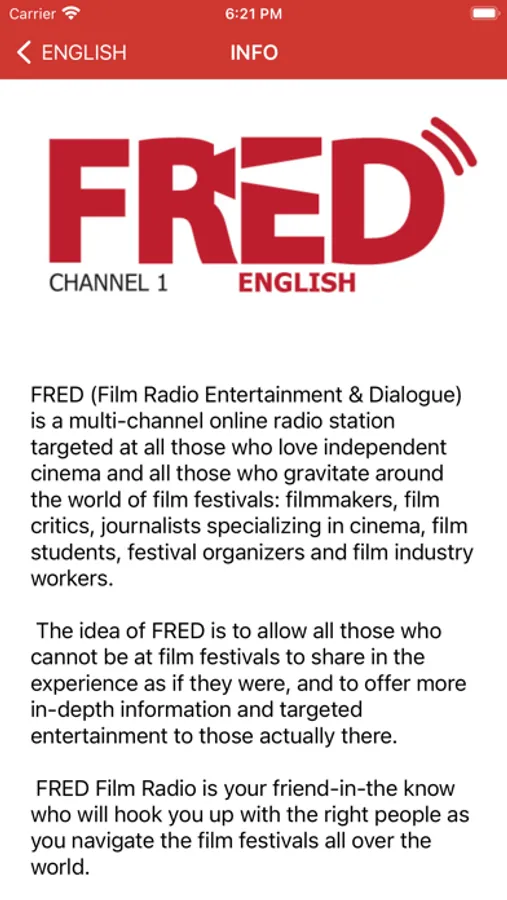 FRED Film Radio is your friend-in-the-know who will hook you up with the right people as you navigate the film festivals all over the world. You will have unlimited access, 24/7, to detailed introduction to films, interviews with the movers and shakers of film festivals, discussion panels, commentary on press conferences, and of course a lot of really cool music.