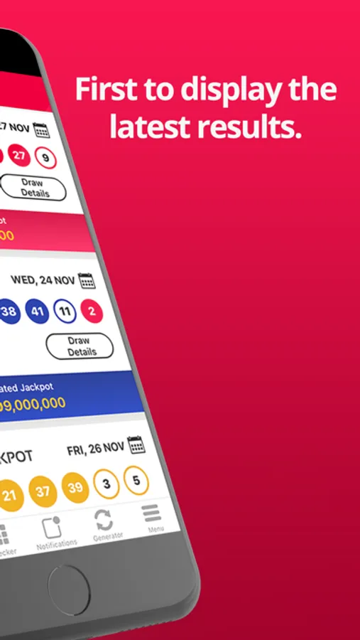 Get notified instantly when the latest lottery results and prize breakdowns become available. The App allows you to customise notifications for specific lottery games and you can also choose which days of the week you play. Want to know when the jackpot has rolled over or has reached a certain amount? Just head to the Notification section of the app to set up your alerts. There is also the option to set notifications at times that suit you - great for reminding you to purchase tickets before the draw.