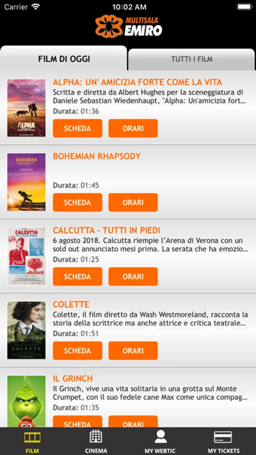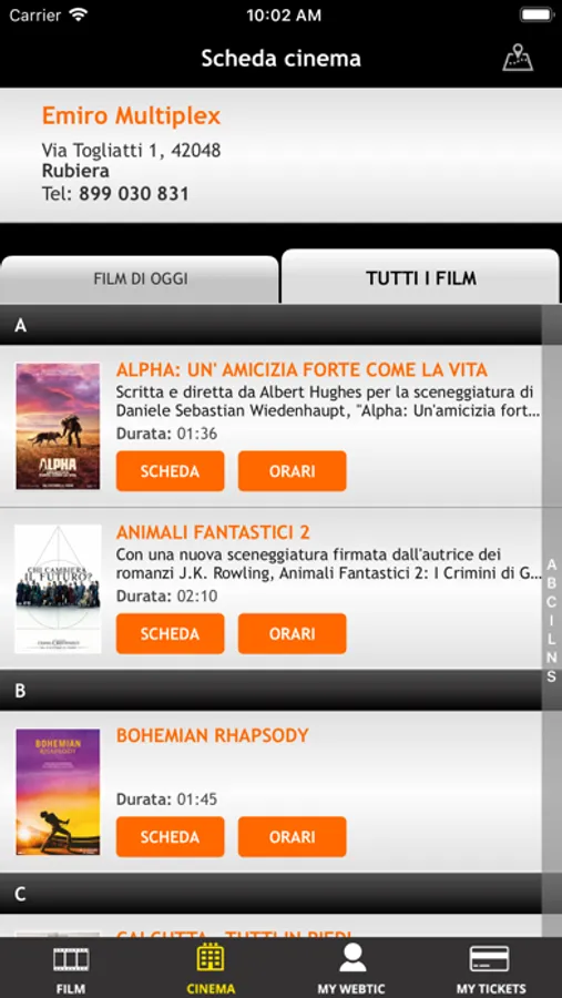 Applicazione di Crea Informatica, per l'acquisto e la prenotazione dei posti nel Multiplex Emiro di Rubiera (RE)