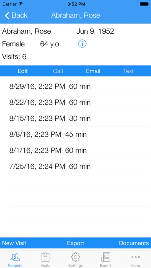 - Contact patient via email or phone directly in the app