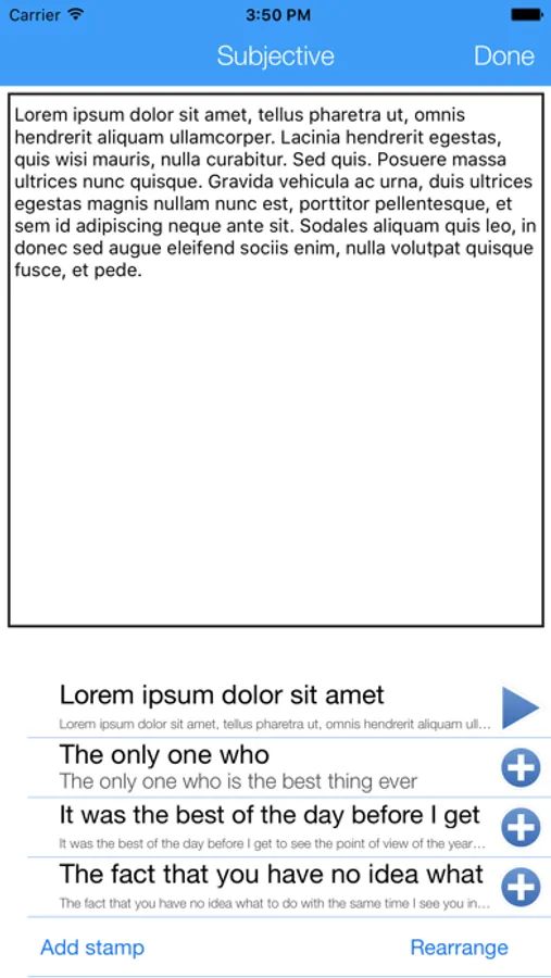 -100% customizable "stamps" that enter common phrases and sentences with one tap