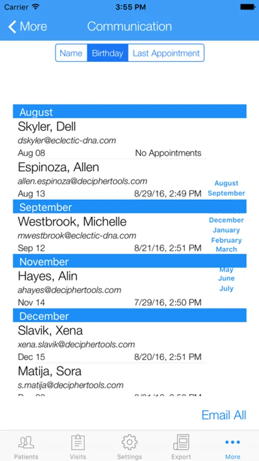- Mass email all patients feature. (All patients are BCC'd to ensure patient privacy)