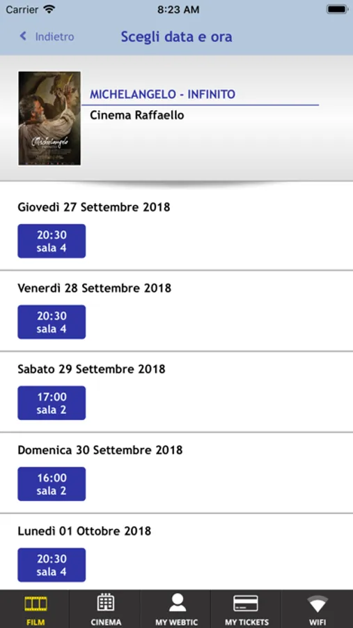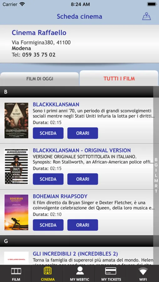 Applicazione di Crea Informatica, per l'acquisto e la prenotazione dei posti nella Multisala Raffaello di Modena.