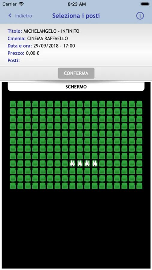 Potrai prenotare un massimo di 8 posti al giorno, anche per film diversi.