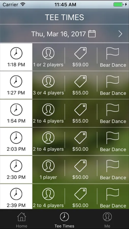 The Golf Club at Bear Dance app provides tee time booking for the Golf Club at Bear Dance in Larkspur, CO with an easy to use tap navigation interface.