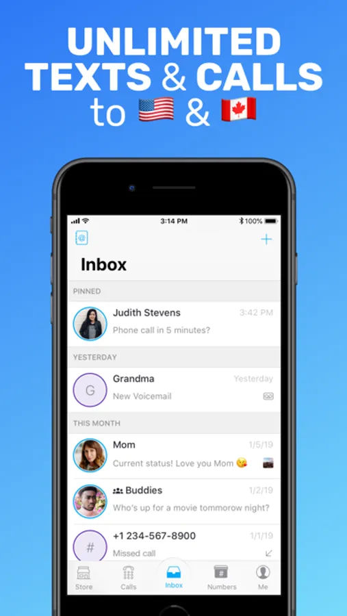 With TextMe your calls & texts to any number in the US & Canada are totally free!