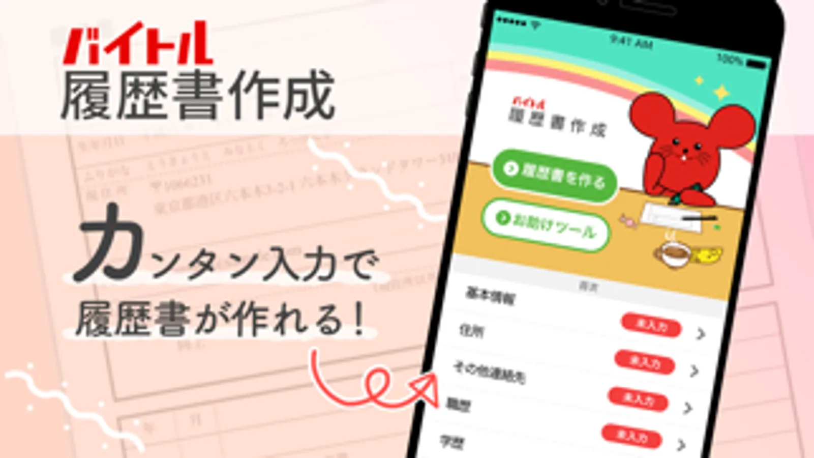 日本最大級のアルバイト求人アプリ「バイトル」から生まれた履歴書作成アプリ!