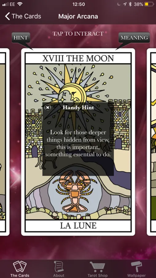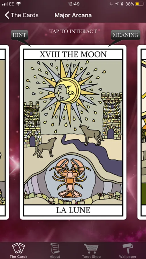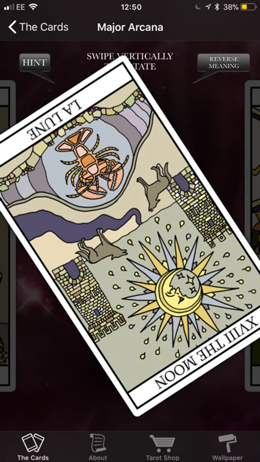 To access a tarot card's meaning simply choose your card then tap the meaning to see it, or rotate the card with your finger to see the reversed or upside down meaning. This app is compatible with any standard 78 card deck and the cards are from the 'Tarot Lovers' modern take on the traditional Marseilles style deck due for release shortly. For this reason this app is an essential companion guide for anyone looking to learn in-depth tarot meanings.