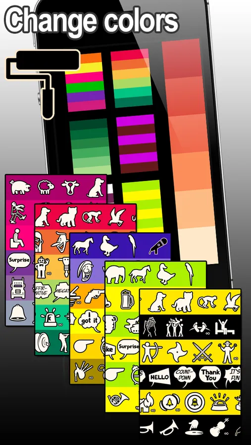 - Scroll and swipe through six soundbars: Animals, humans & laughters, things & weapons, cool sayings, sports, alarms and music.