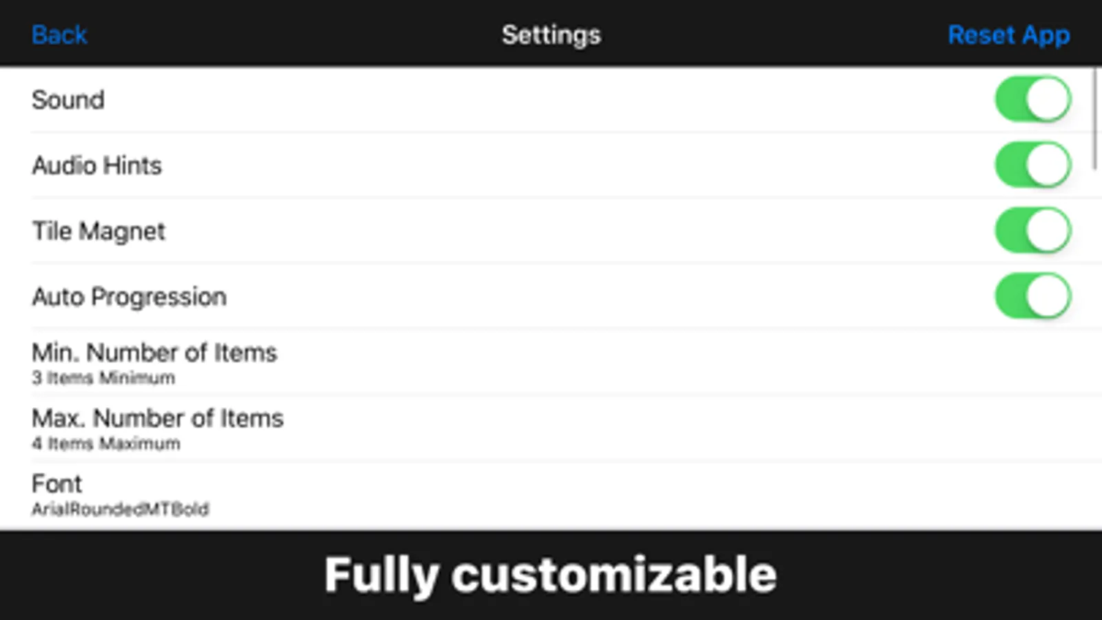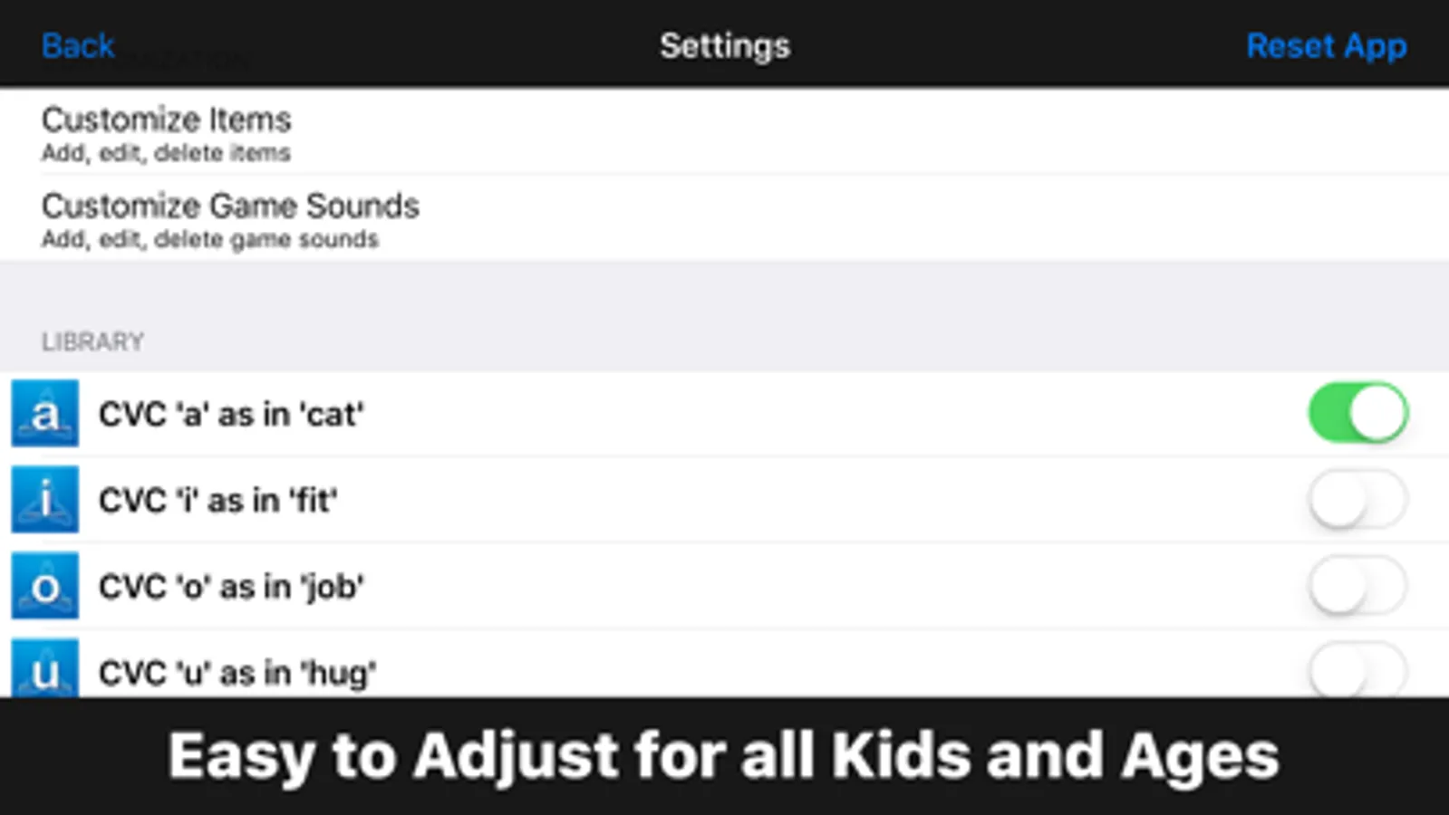 ● Customize game sounds - can even customize the game and success sounds so that your little one hears your words of appreciation