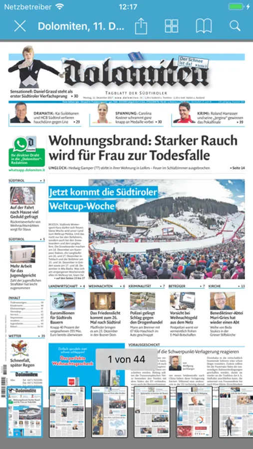 Die Dolomiten-App bringt Ihnen den Qualitätsjournalismus von Südtirols führendem Tagblatt direkt auf Ihr iPad und iPhone: Kommentare, Hintergrundgeschichten sowie Reportagen in Text und Bild im modernen, preisgekrönten Erscheinungsbild. Die App überträgt das traditionelle, einzigartige Dolomiten-Lese-Erlebnis auf Ihr Gerät und enthält neben der aktuellen Tagblatt-Ausgabe auch die Beilagen Dolomiten Magazin, Wiku, M@arkt sowie sämtliche Sonderbeilagen. Natürlich können Sie auch auf "Zett die Zeitung am Sonntag" zugreifen und bequem alle Ausgaben lesen.