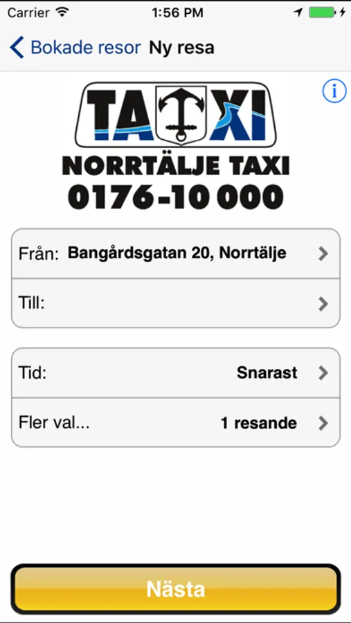 Nu kan du boka taxi med oss via vår app! Enkelt och smidigt, boka utifrån din aktuella position eller sök på adress eller plats.