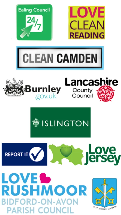 The Love Clean Streets family incorporates the following local authorities and their previous apps but you can use Love Clean Streets to report anywhere else too: