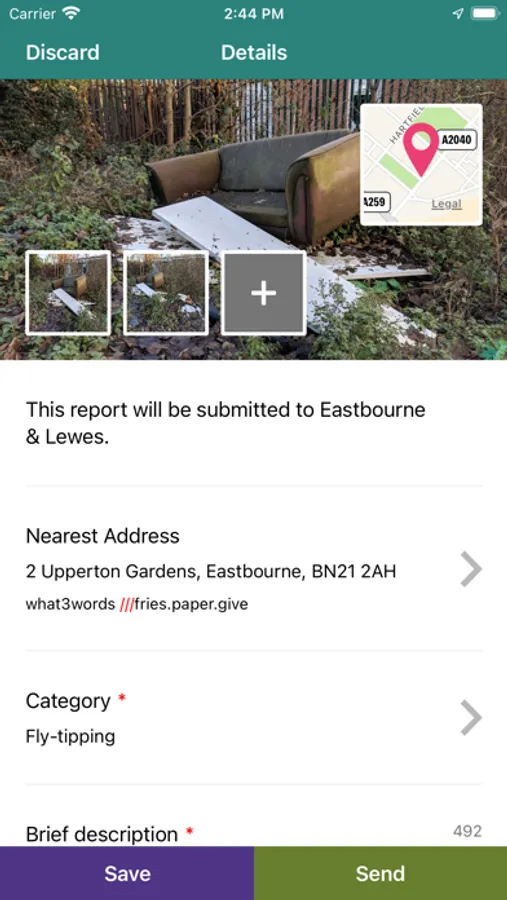 3) Take a picture, your location is automatically detected and displays the authorities colours if they’re in the Love Clean Streets Family