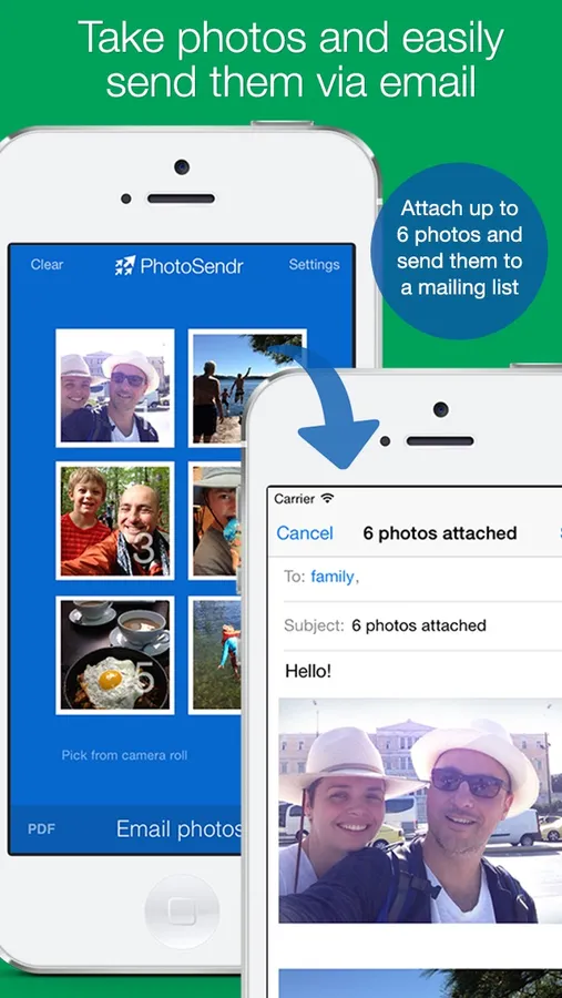 Send up to 6 photos in 1 email. More than 50.000 downloads worldwide!