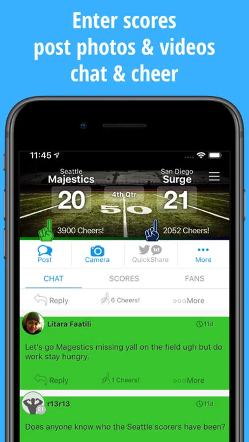 Any type of organization from youth to professional can be covered. Some of our most popular communities are High School football, Triple Crown baseball, PAHL hockey, NCAA football, and AYSO soccer. We have over 45,000 teams already in our system but if you don’t see your team you can create them right from the app. Team support includes varsity and preps but also middle school, elementary and youth. We recently launched support for Canadian Junior A Hockey and have scores from British Columbia, Alberta, Manitoba, Saskatchewan and Ontario. There is coverage of English Premiere League, Bundesliga, La Liga, Liga MX, Serie A, Ligue 1, and English League Championship.