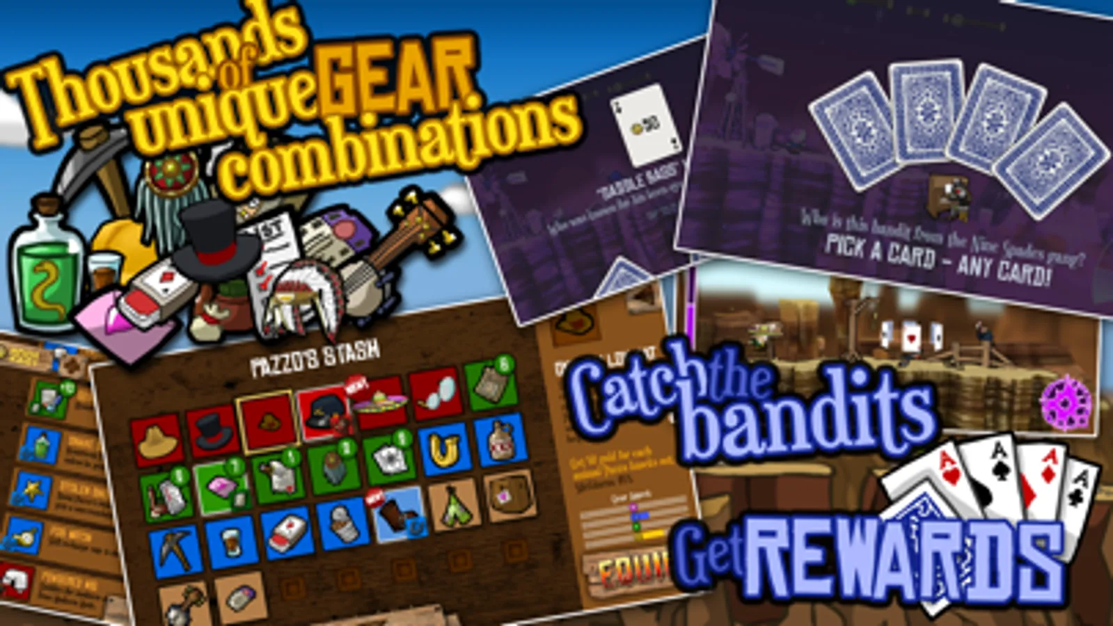 Level up Pazzo by making it through the mayhem of his "madness modes", allowing you to unlock Perks that will give you an edge to survive the canyon longer and catch more of those underhanded bandits.