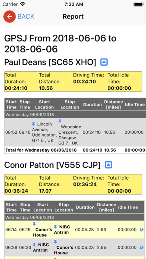 Report - allows you to run Journey report for a desired vehicles for a selected time span