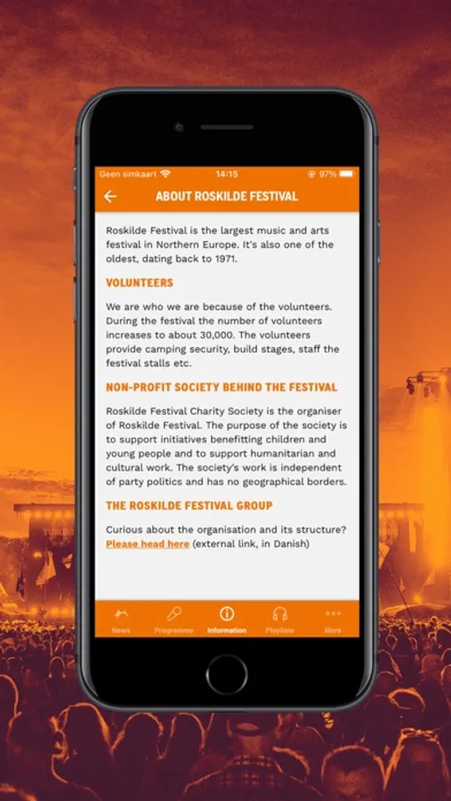 Find your way through a line-up of more than 200 acts, a world of delicious food, amazing art, inspiring events, crazy and creative camping and our many non-profit activities throughout the year.