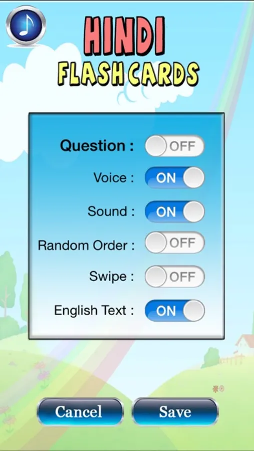 Building strong Hindi vocabulary has never been so exciting for preschoolers and toddlers. EFlashApps Hindi Educational Baby Flash Cards features over 450 high quality images with text and voiceovers. There are additional real sounds where applicable (such as a lion's roar or an ambulance siren) to enhance visual and auditory learning and memory simultaneously. Parents have the option to turn voiceovers off during parent-child learning session and turn voiceovers on when the child is self-learning. They can enable Question Mode to display 4 images and ask the child to click on the right answer. Complexity of words is perfect for ages 1 to 4 so two or more young siblings can play together and even teach eachother!