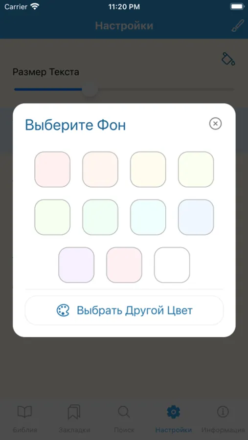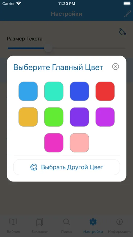 Приложение также предоставляет возможность изменить размер текста, цвет заднего фона и главный цвет в приложение что позволит Вам настроить вид под ваш собственный вкус.