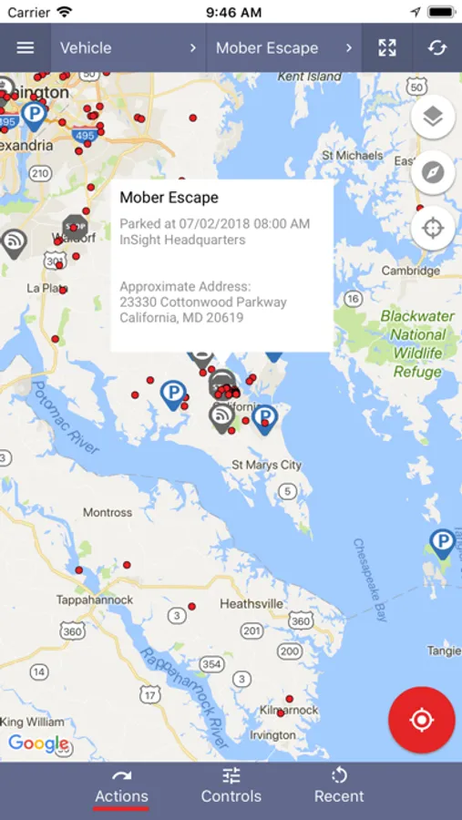 • Mapping: views for Standard or Satellite, and layers for traffic and businesses. Instantly know the status of your fleet through color-coded event icons.