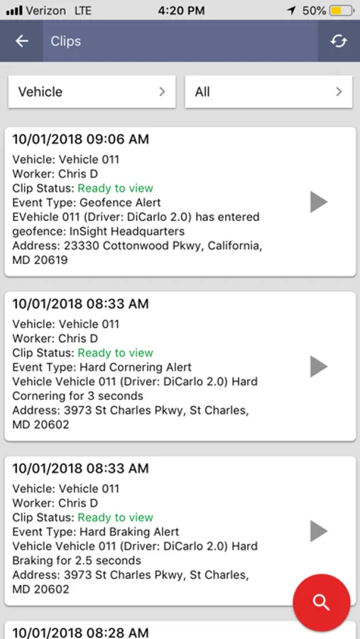 o Worker activity – driver status changes, job updates, barcode scans, form submissions, HOS, inspections