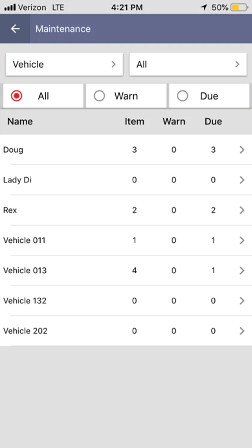 • Fleet Status – listing of everything you track, showing current location and status. Easy search feature to find what you’re looking for.