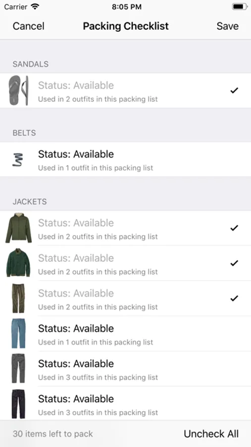 • PACKING LISTS: add whole outfits, plan how you'll pack ahead of time, generate printable checklists and infographics