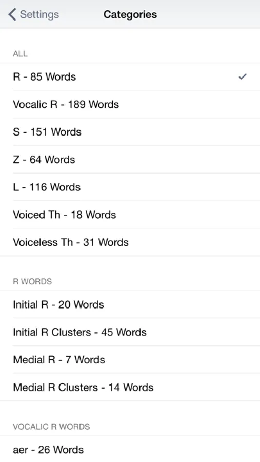 This app uses the content from LocuTour’s Articulation IV CD. There are 475 words and photographs. There are: 85 words in /r/, 189 words in vowel controlled /r/, 212 words in /s/, /z/, 117 words in /l/, 49 words in voiced/voiceless /th/. Words may be in multiple phoneme groups.