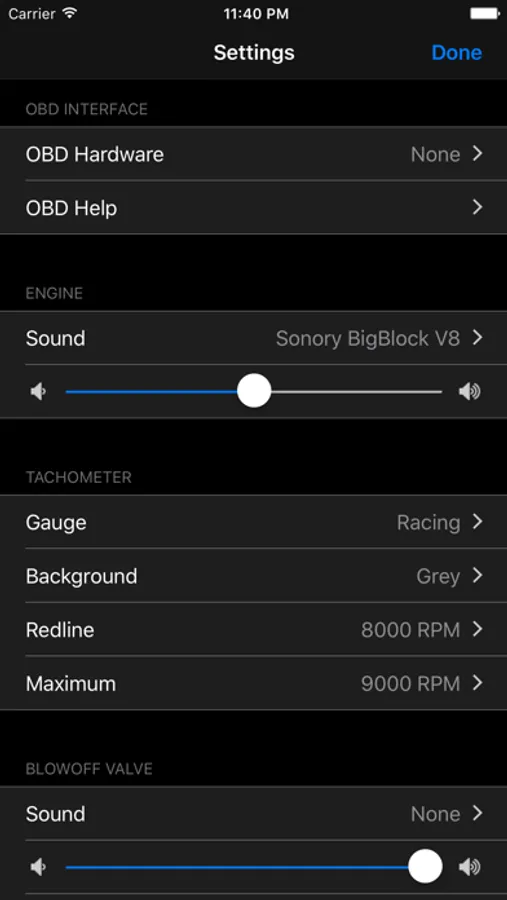 Hear the sound of a turbocharger blow-off valve when your RPM drops below a configurable threshold. DragFX can also provide an audible indication when 3 different RPM thresholds have been exceeded to assist in shifting gears.