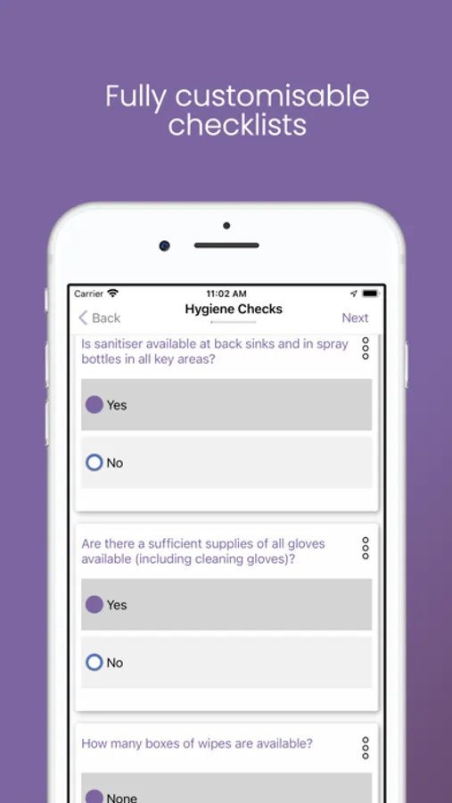 • Workflow for guided checklists, allowing different questions to be asked depending upon previous answers selected.