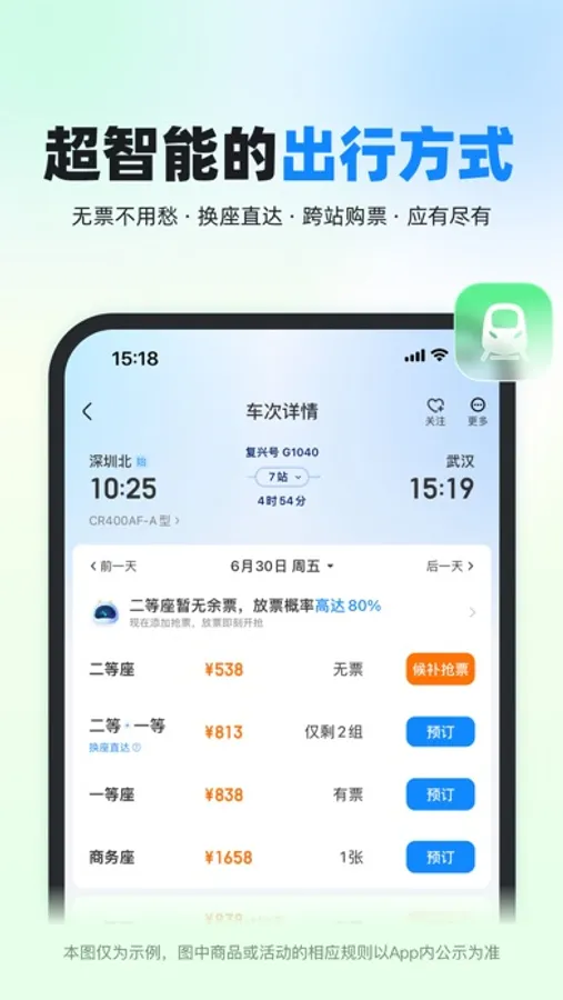 • Train ticket prices are synchronized with the official 12306 website, with worry-free refund and exchange policies