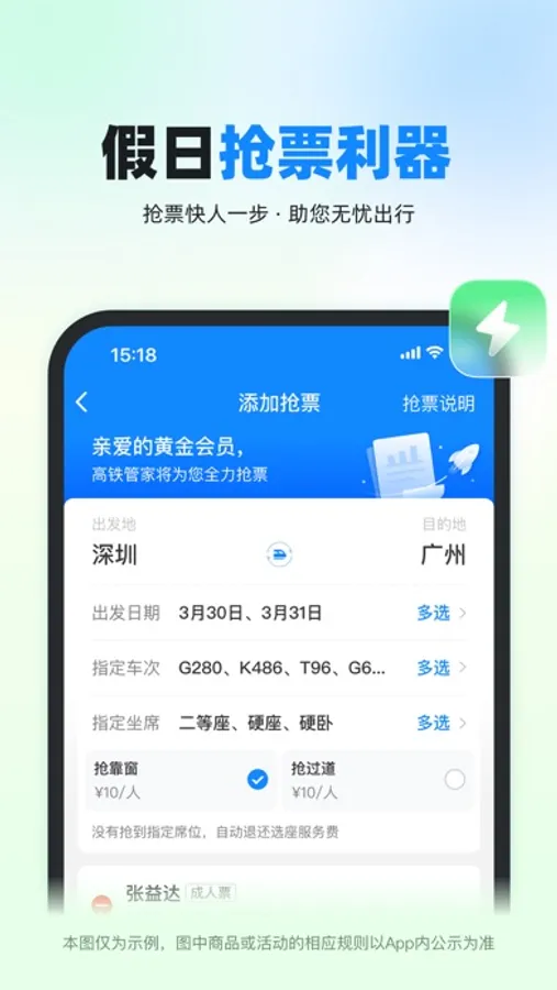• 24-hour booking, anytime and anywhere to buy train tickets, high-speed rail tickets, student tickets, and child tickets