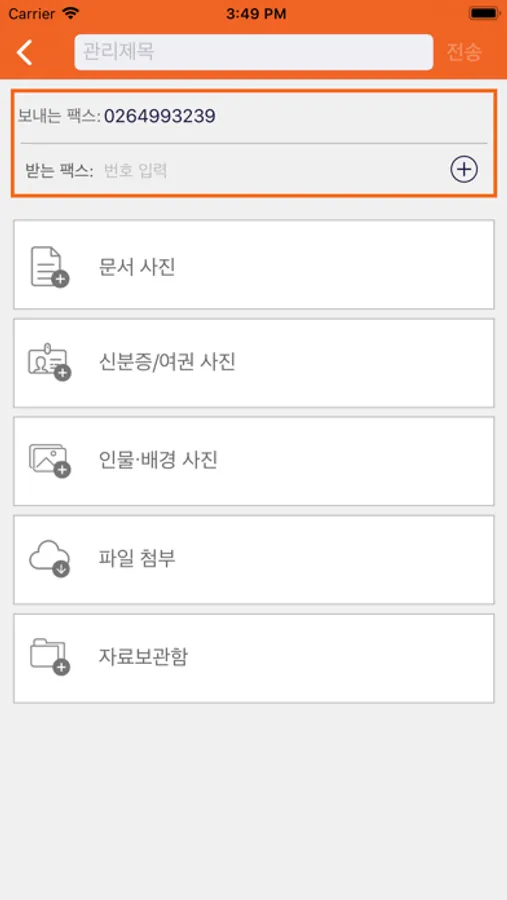 - 스마트폰에 저장된 이미지, 문서파일을 여러 개를 선택하여 팩스로 전송하실 수 있습니다.