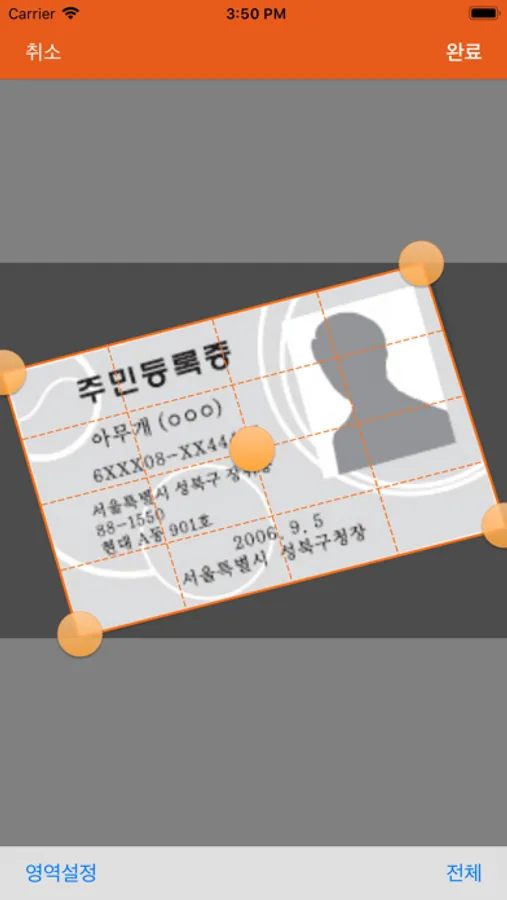 - 스캔(영역 설정) 기능을 내장하여 원하는 부분만 잘라서 발송 가능합니다.