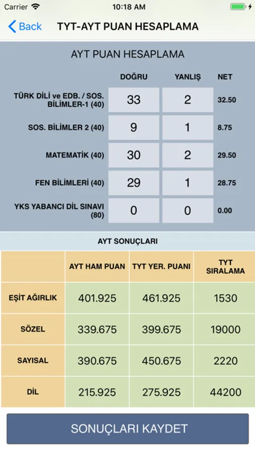 Bu program ile öğrenciler; sorulara verdikleri doğru ve yanlış cevapları girerek, TYT veya AYT de alabileceği yaklaşık sınav puanlarını hesaplayabilir.