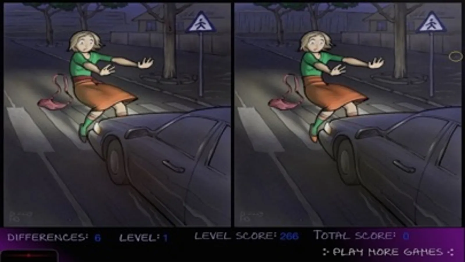 The differences between the pictures are very slight in every points of the game. You should find a difference and click the different point in any picture. You can chose ‘play with hints’ firstly.