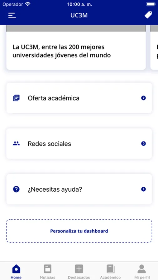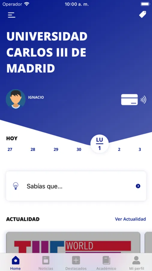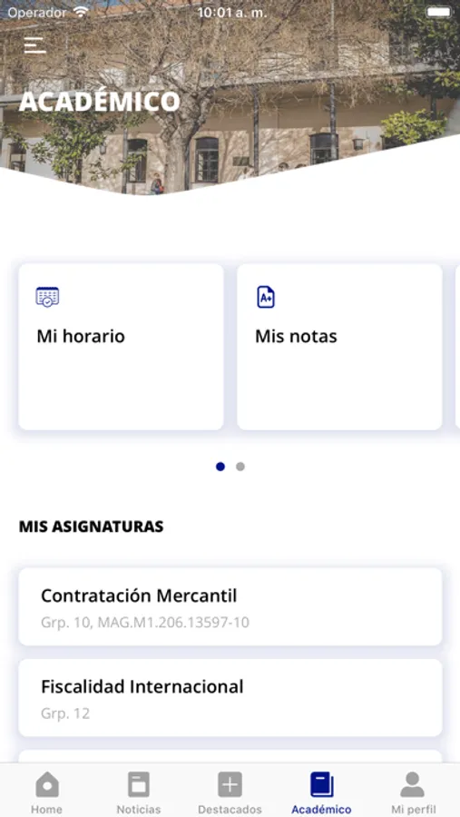 • Perfil privado: Todos tus datos personalizados según tu perfil universitario. Consulta tus asignaturas, calificaciones, etc. Y también tu tarjeta universitaria digital. ¡Siempre la llevarás contigo!