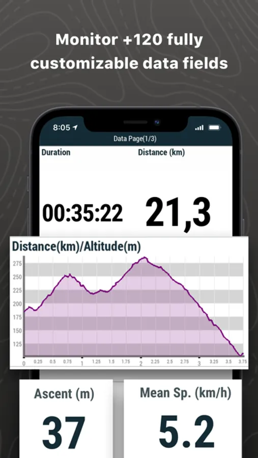 Back at home, analyze your routes with detail and accuracy. Relive every stage of your adventure with graphs, laps, +120 data fields...
