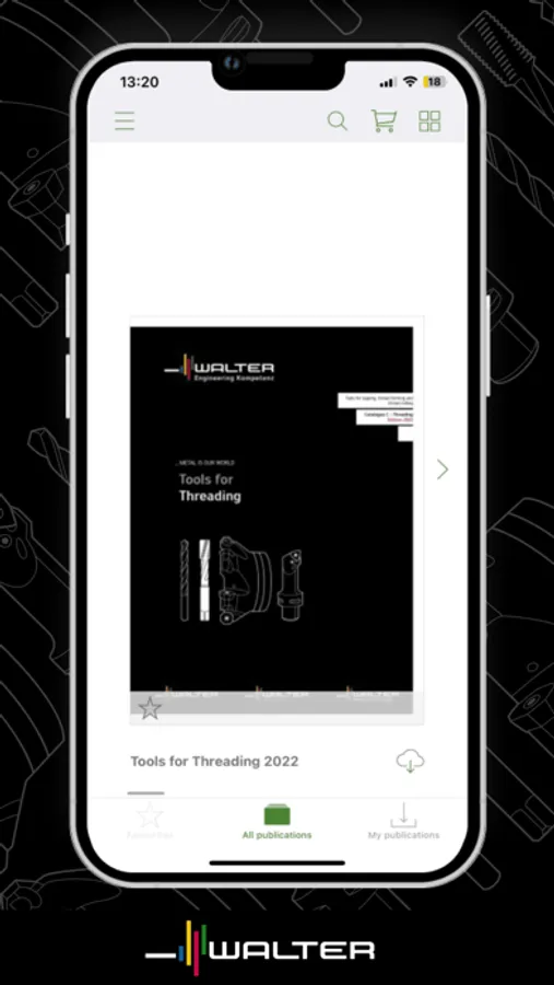 The Walter e-Library app provides fast, interactive access to the digital print media of the Walter AG worldwide: From the General Catalogue with over 49,000 products from the Walter, Walter Titex and Walter Prototyp competence brands, to Supplementary Catalogues and selected brochures – all available in 17 languages, wherever you are, whenever you need.