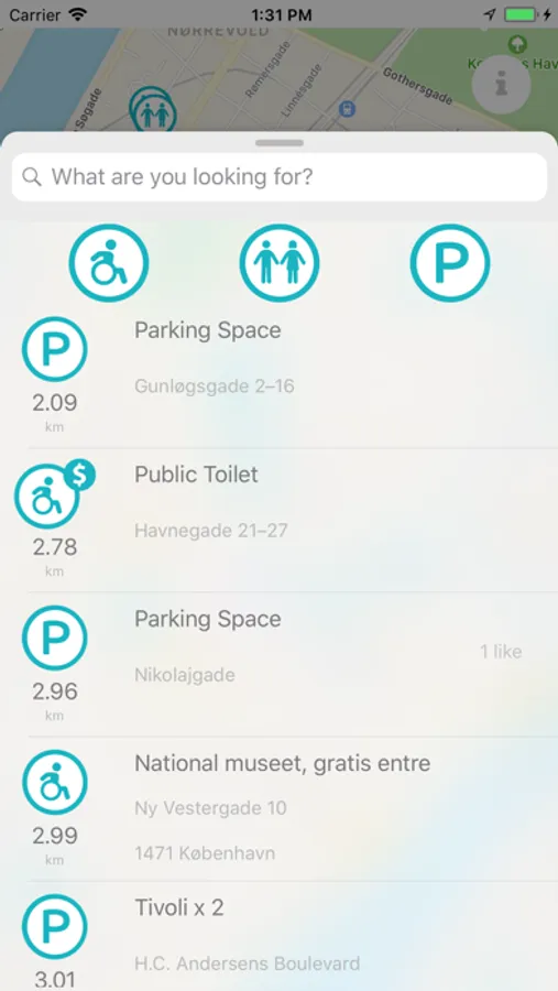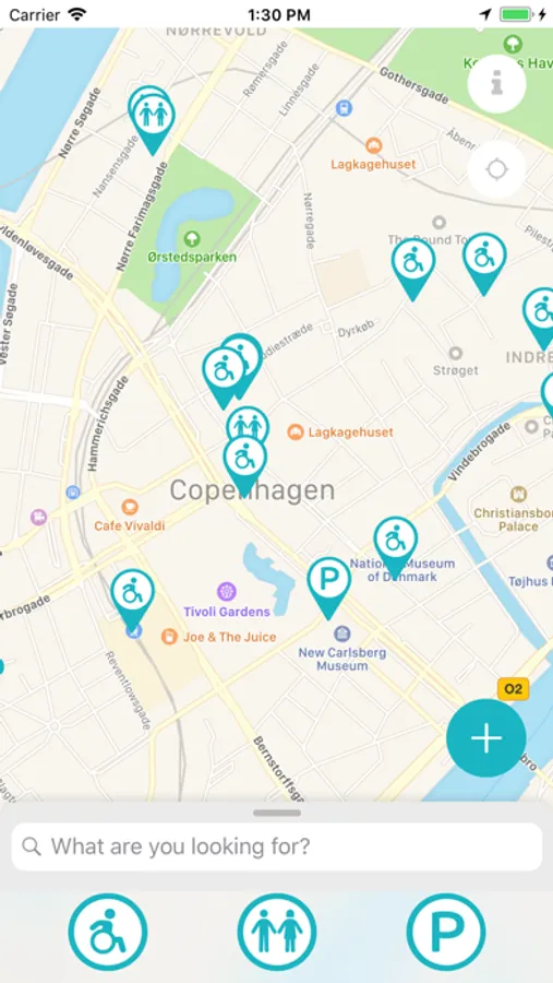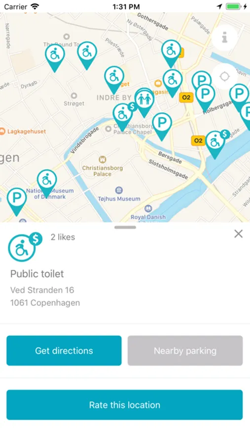 - Instant overview of your nearest wheelchair-friendly toilet and parking spaces