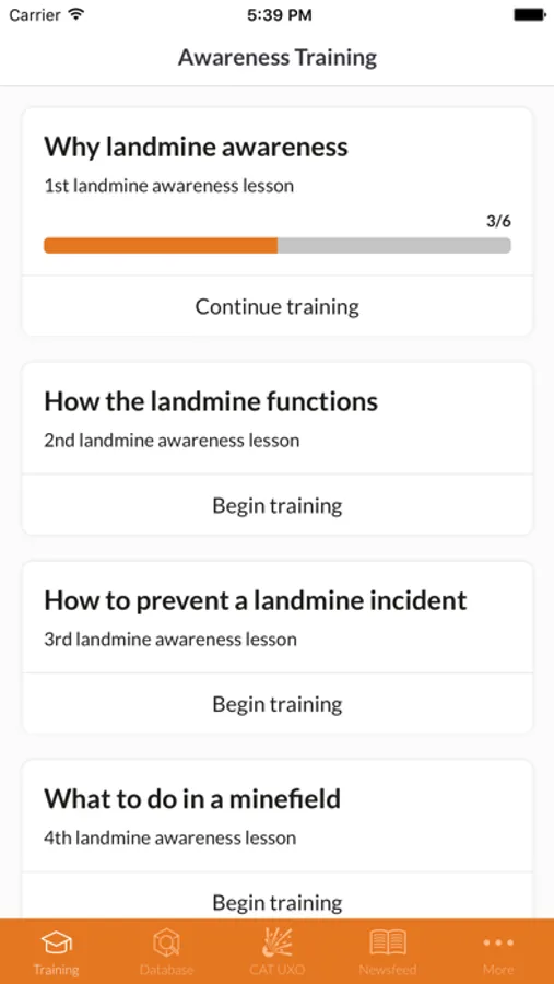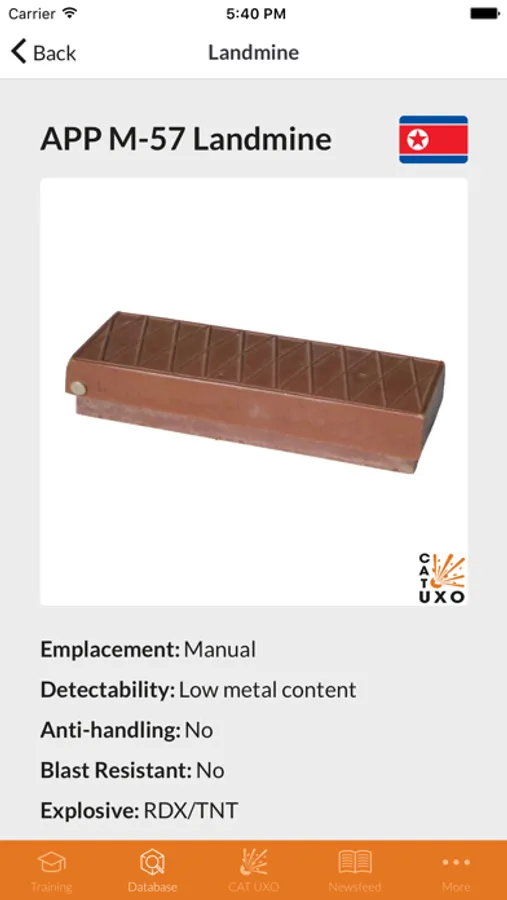 This app shows how landmines function, how to avoid minefields and what to do in a landmine situation. Included is access to a landmine database which allows individuals to have a better understanding of what anti-personnel and anti-vehicle landmines visually looks like on the ground. An additional database provides an insight into the landmines used within a country.