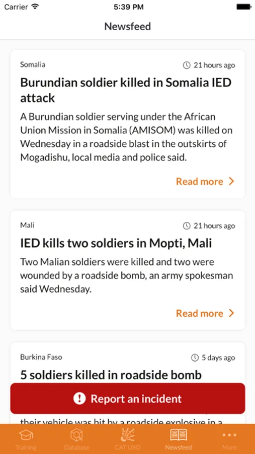 From within the application, users can contribute information reference landmines or on-going landmine incidents and distribute news feeds between users.