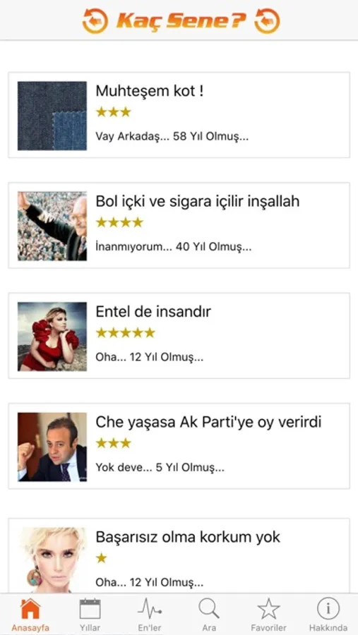 Şimdi birazda Kaç sene oldu uygulamasında öne çıkan içeriklere göz atalım.
